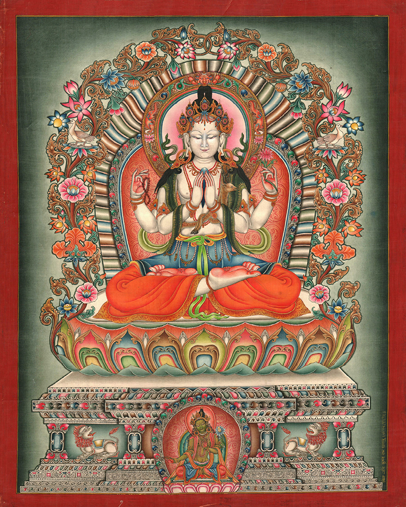 四臂观音唐卡尼瓦尔唐卡四臂观音纽瓦尔唐卡
