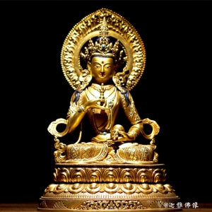 这尊金刚萨埵是迦雅工艺师22公分精品系列作品的其中一尊。采用同工艺制作的佛像还包括了长寿佛、绿度母、文殊菩萨等,这一系列的作品簪刻基本保持一致,开脸也是同位师傅进行,所以在工艺上能够保持非常稳定的水准,即使是一整套佛像同时供奉在一起,也非常协调庄重。
