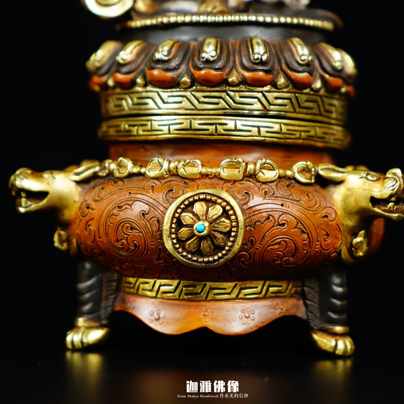 此前迦雅制作的30公分或者40多公分尺寸的能食金刚香炉,由于尺寸大、造价高,很多师兄便希望工艺师能制作一尊尺寸更小,更实惠的香炉,这方香炉,便是由此而来。