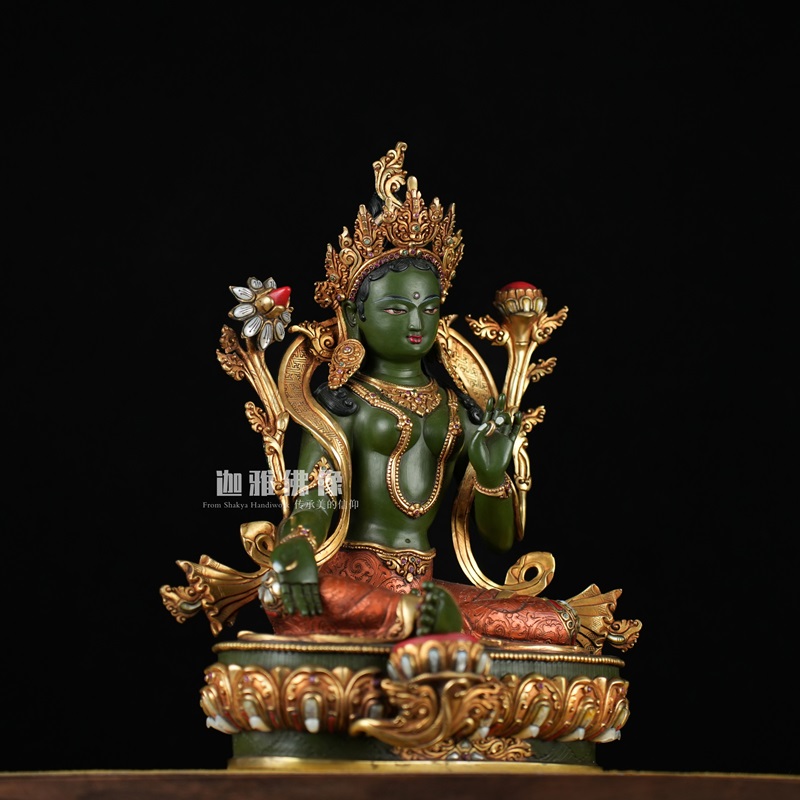 本尊鎏金彩绘绿度母作品高度约36公分,是一尊设计风格十分复古的经典绿度母造像。目前本尊度母作品已被结缘,我们一起来欣赏瞎本尊绿度母的创作风格。